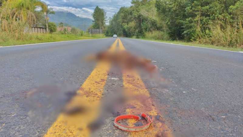 Homem fica ferido e cão morre em acidente na BR-280, em Jaraguá do Sul