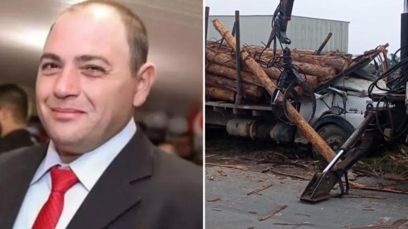Identificado motorista que morreu após ser atingido por carga de madeira na BR-470