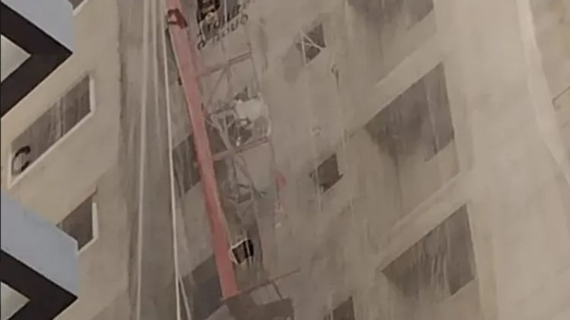 Trabalhadores caem de andaime em obra de prédio no Litoral Norte de SC