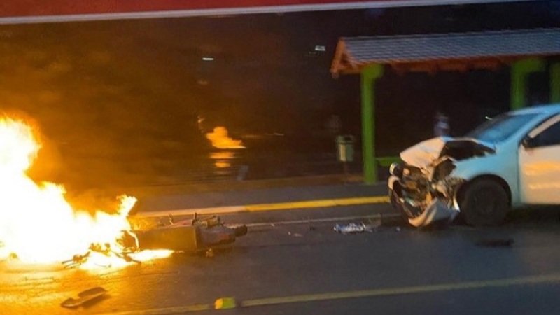 Moto pega fogo após batida em Jaraguá do Sul