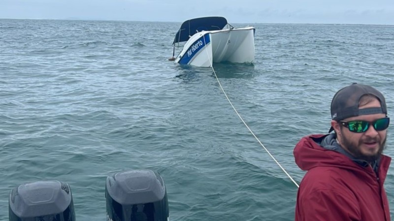 Embarcação de pequeno porte naufraga em Balneário Barra do Sul