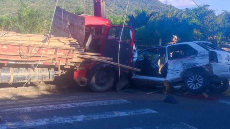 Homem fica gravemente ferido após colisão entre carro, caminhão e poste em Indaial