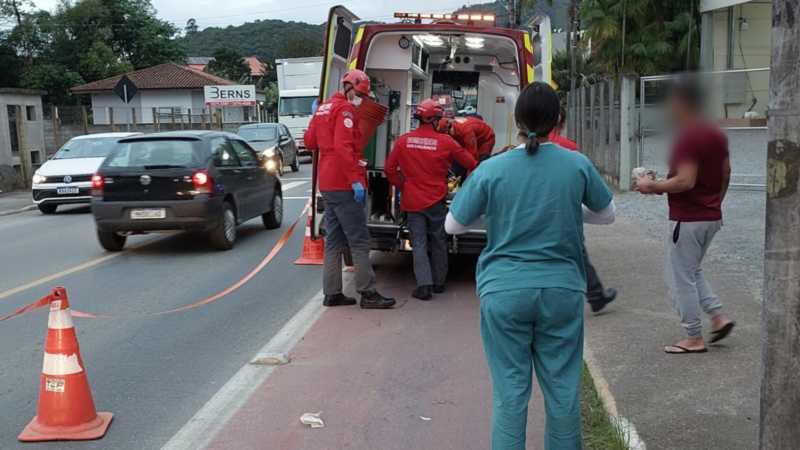 Homem e menina de sete anos ficam feridos em queda de bicicleta em Jaraguá do Sul