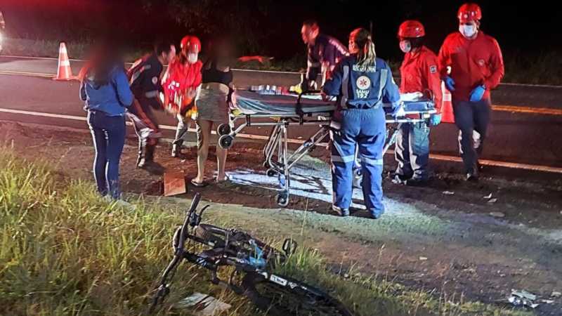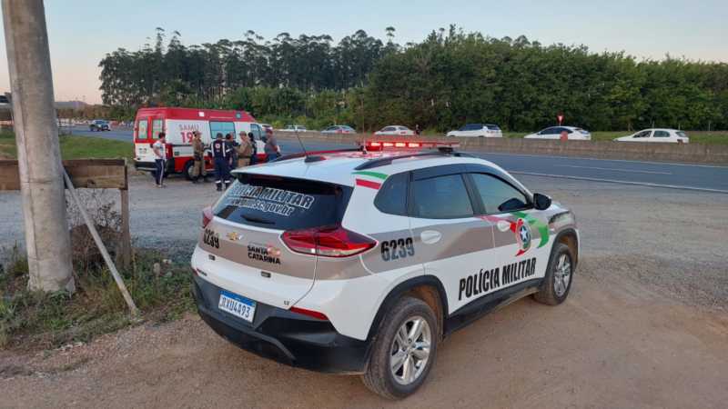Duas pessoas ficam feridas em acidente entre moto e bicicleta na BR-280, em Jaraguá do Sul