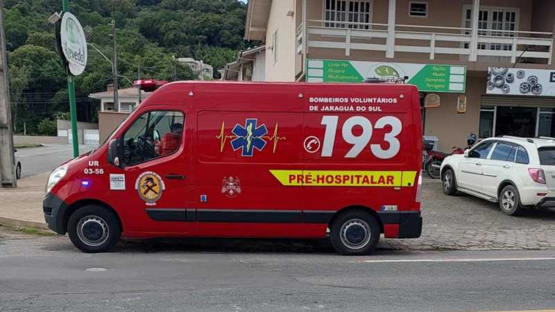 Ciclista fica gravemente ferido após ser atingido por moto e bater a cabeça em taxão em Jaraguá do Sul