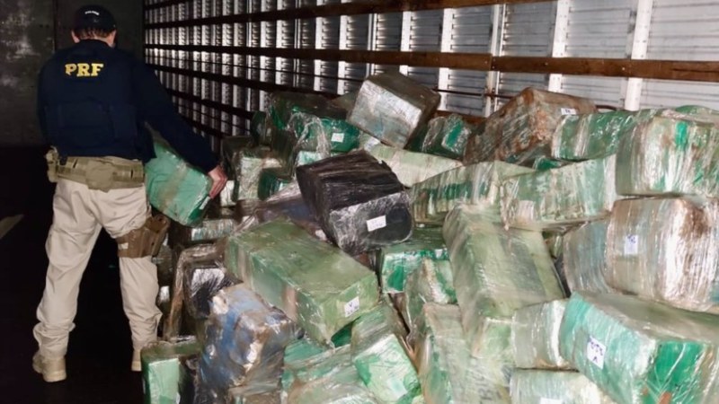 PRF apreende 3 toneladas de maconha, munições e fuzis em carreta