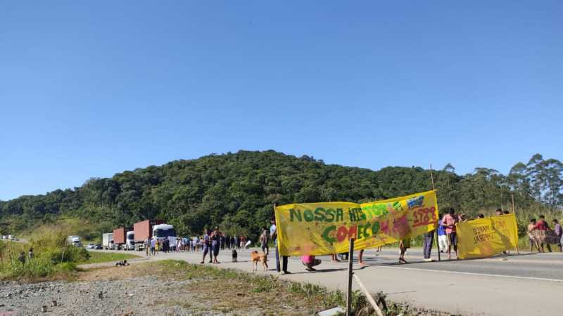 Indígenas fazem protesto e fecham a BR-280, em Guaramirim