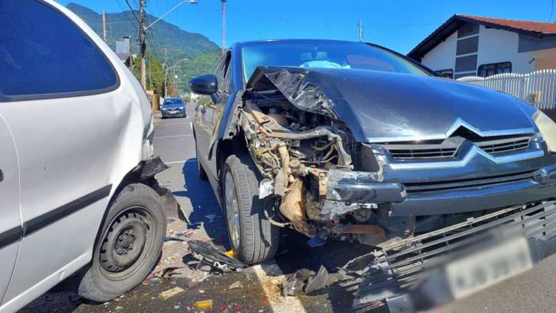 Mulher é hospitalizada após acidente envolvendo três carros em Jaraguá do Sul
