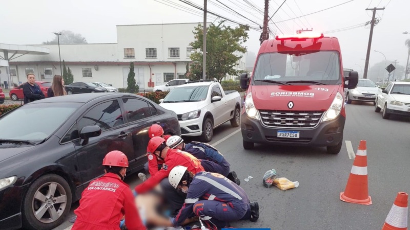 Ciclista fica ferido após ser atingido por carro em Jaraguá do Sul