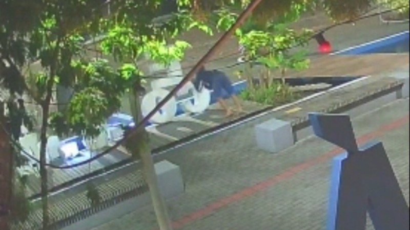 Vídeo mostra o momento em que homem vandaliza letreiro na praça de Corupá