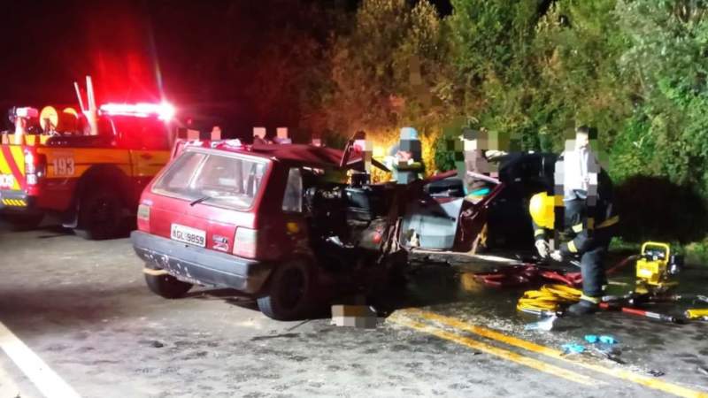 Quatro pessoas ficam feridas em colisão frontal na BR-280 em Canoinhas