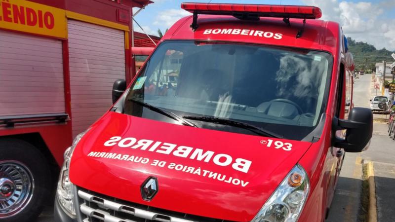 Jovem é socorrido pelos bombeiros após cair de moto em Guaramirim
