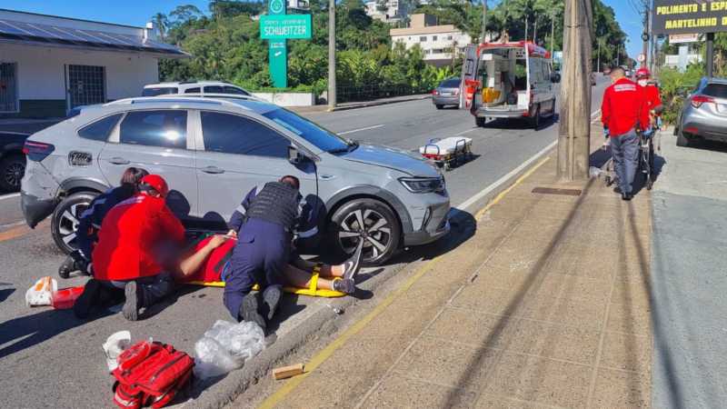 Batida entre carro e duas motos é registrada em Jaraguá do Sul