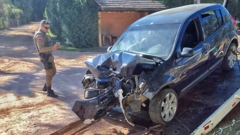 Motorista é autuado após abandonar carro batido com três crianças dentro em Corupá