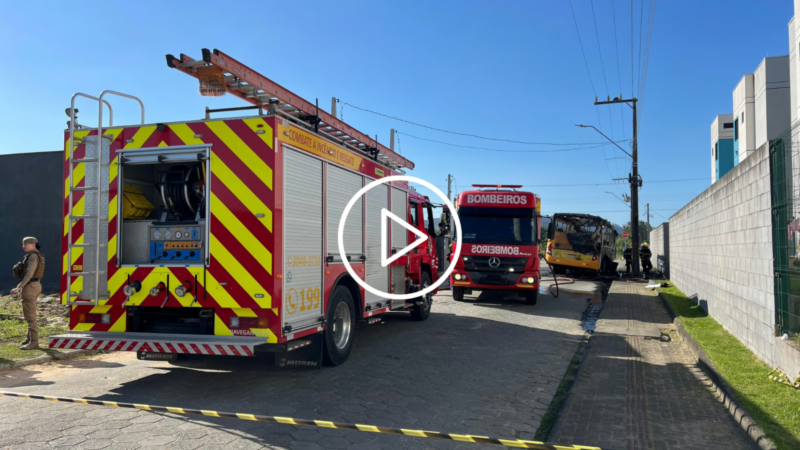 Incêndio atinge ônibus em movimento e passageiros conseguem sair a tempo