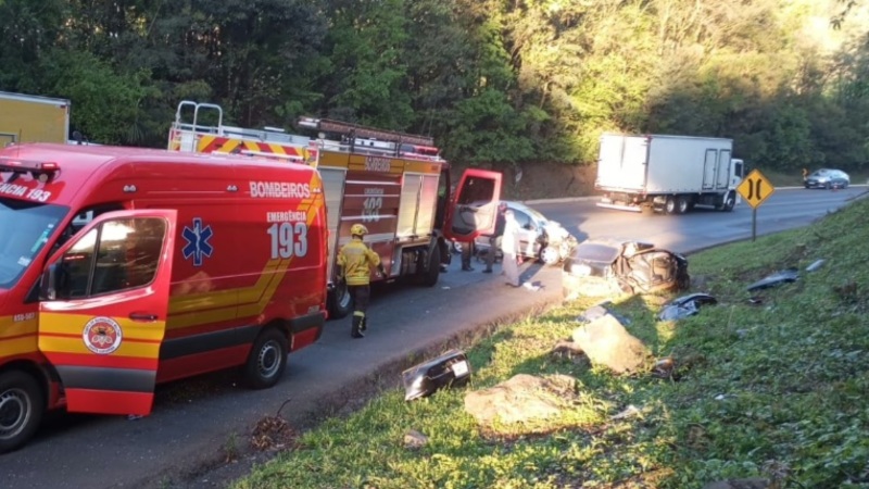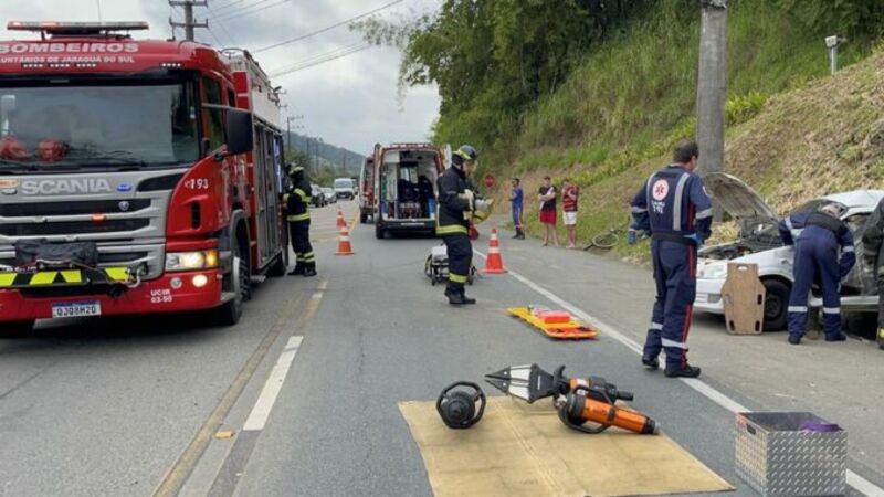 Acidente entre carro e caçamba na SC-110 deixa motorista presa nas ferragens em Jaraguá do Sul
