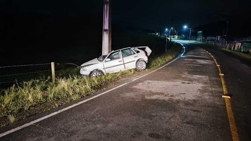 Jovem colide carro contra poste entre os bairros João Pessoa e Vila Chartres, em Jaraguá do Sul