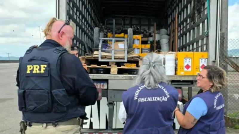 Alimentos junto com substâncias corrosivas: caminhão irregular é flagrado na BR-101