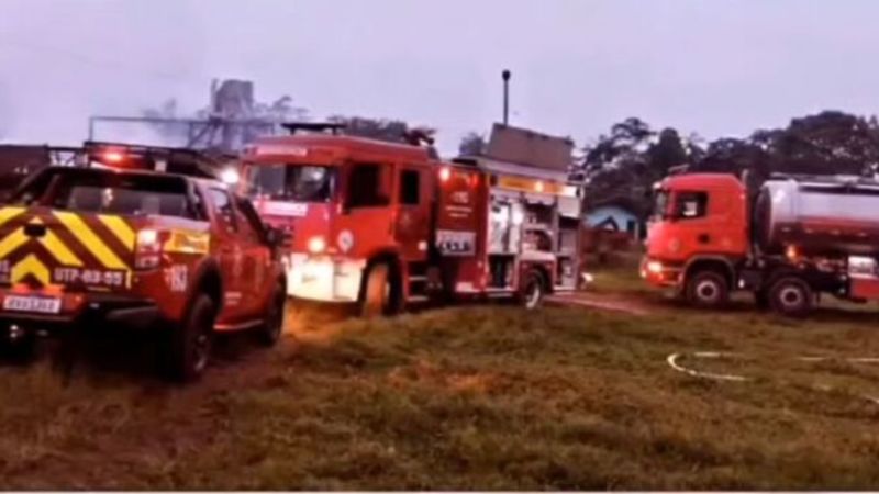 Galpão fica destruído após incêndio em Jaraguá