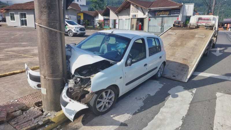Carro bate em poste e quatro pessoas ficam feridas em Jaraguá do Sul