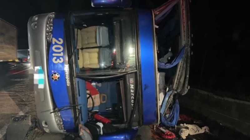 Ônibus com fiéis tomba na Rodovia Régis Bittencourt em Cajati, SP e três pessoas morrem