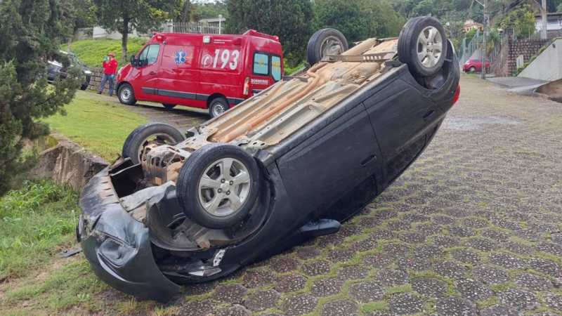 Sem motorista, carro capota em morro em Jaraguá do Sul