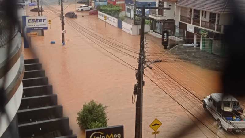 Fortes chuvas causam alagamentos em ruas de Indaial