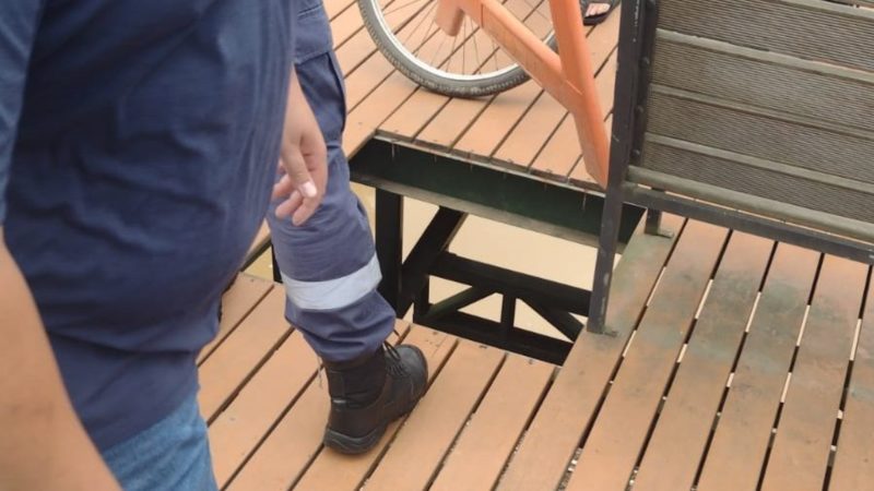 Mulher despenca em buraco aberto em passarela de pedestres em Indaial