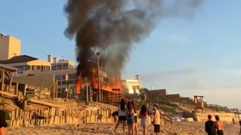 Incêndio de grandes proporções destrói quiosque em praia de Florianópolis