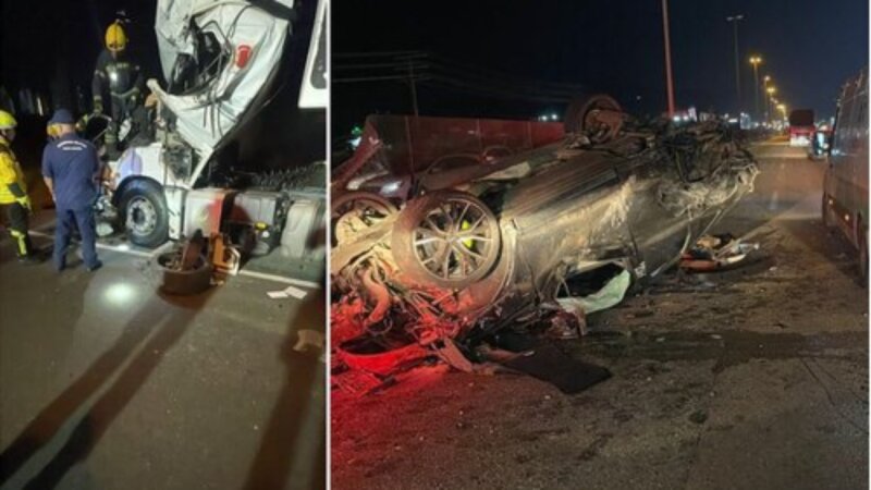Com quatro jovens, carro de luxo roubado capota e provoca a morte de caminhoneiro na BR-101 em SC