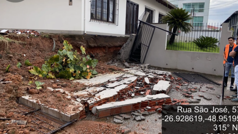 Temporal causa estragos em Gaspar e gera mais de 80 chamados à Defesa Civil em menos de uma hora