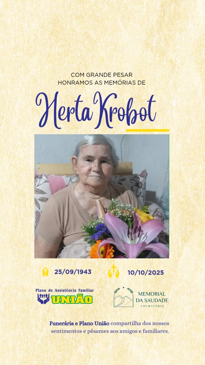 Faleceu nesta sexta-feira 10/10 a Sra HERTA KROBOT com 82 anos de idade