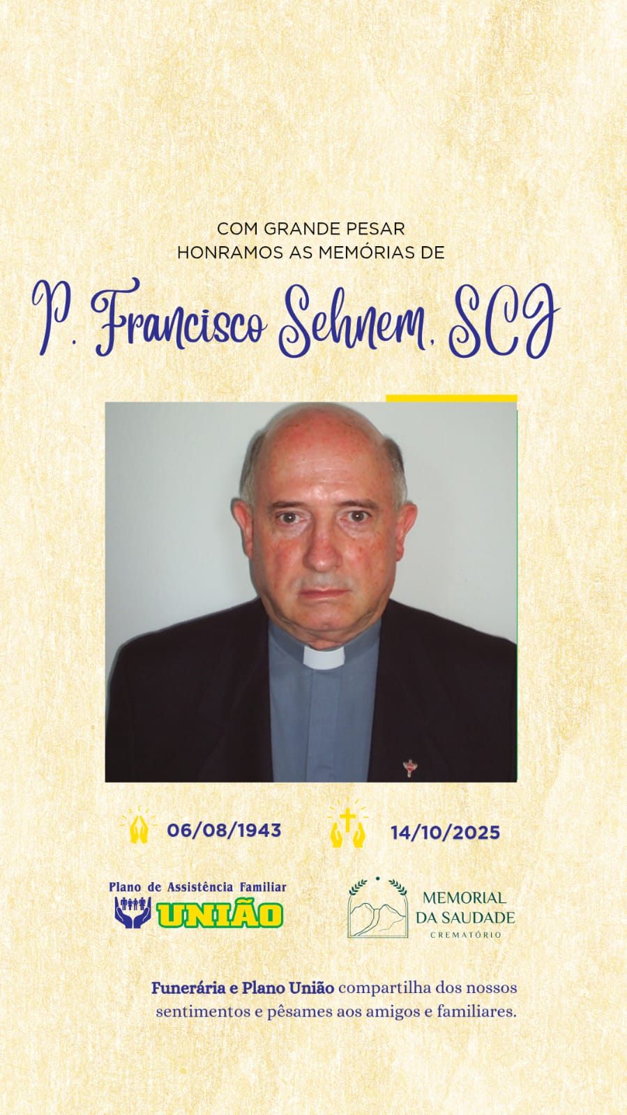 Faleceu nesta terça-feira 14/10 o P. FRANCISCO SEHNEM, com 82 anos de idade