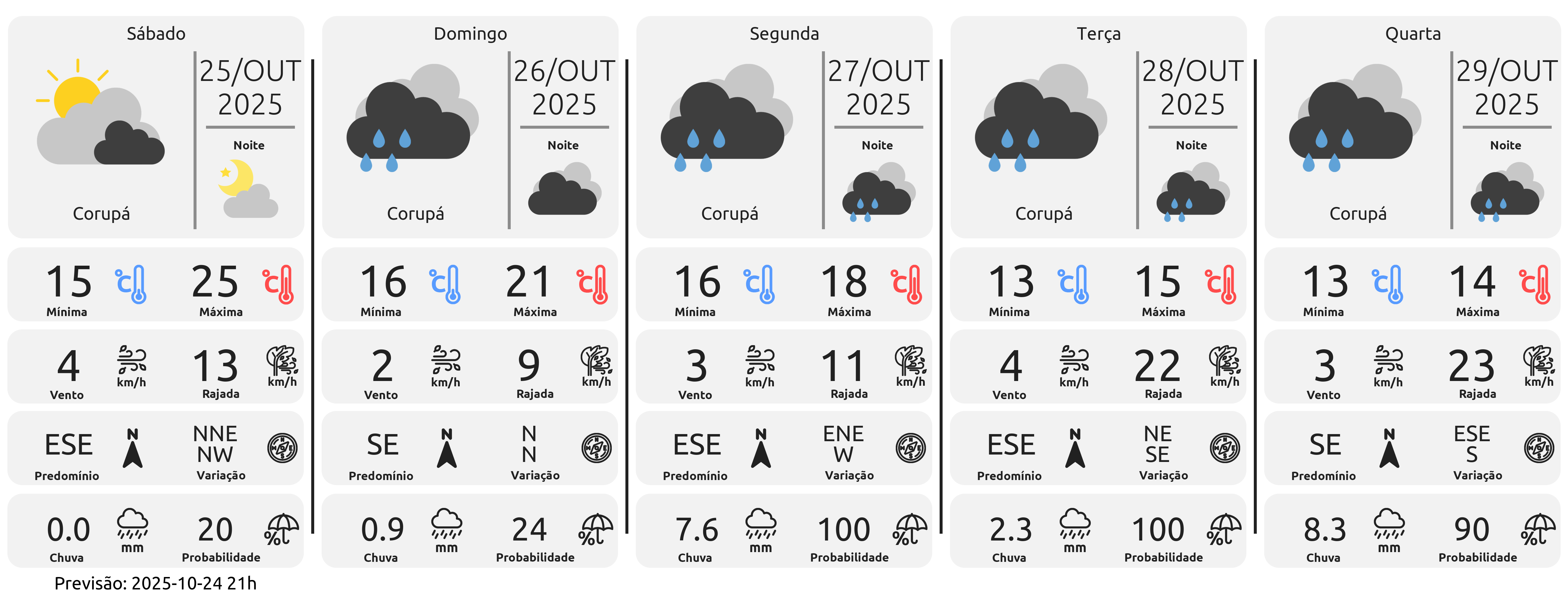 A previsão do tempo neste sábado (25) indica um dia de sol com temperaturas elevadas, mas com possibilidade de chuva e temporais isolados à tarde e à noite.