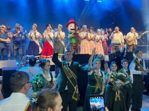 Se o ano parece que está passando em um piscar de olhos, não foi diferente nesses últimos 11 dias da 35ª edição da Schützenfest. O tempo voou e chegamos ao final de mais uma edição da Maior Festa de Atiradores do Brasil. A noite deste domingo (16), foi marcada mais uma vez pela emoção, durante a solenidade de encerramento da festa. O clima era de despedida, mas o público parecia não querer deixar o Parque Municipal de Eventos, querendo aproveitar até os últimos minutos a programação. Teve até continuidade de festa de casamento por lá. A noiva e o noivo radiantes, foram uma atração à parte por onde passaram.