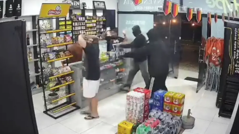 Câmeras flagraram a ação violenta de uma dupla de assaltantes em uma conveniência de Blumenau. Armados, eles ameaçaram o dono e outras duas pessoas, levando dinheiro do caixa e o carro e celular de um cliente. Ninguém se feriu, apesar do susto.