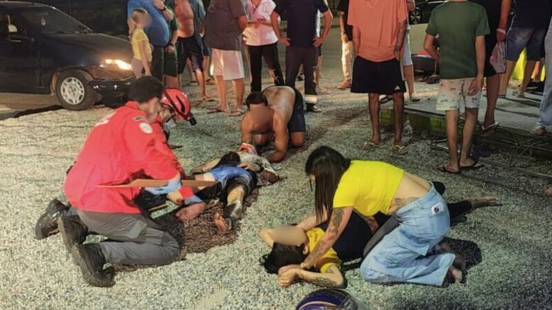 Um casal ficou gravemente ferido depois de bater contra um carro, logo após as 19h desta quarta-feira, 5, na Rua Pastor Albert Schneider, Barra do Rio Cerro, próximo ao acesso à ponte que liga com a SC-110.
