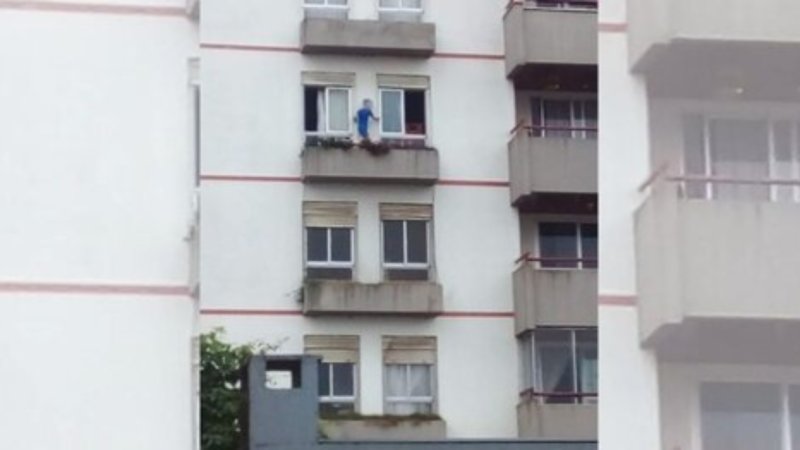 Criança é flagrada pendurada em janela do sexto andar de prédio em SC
