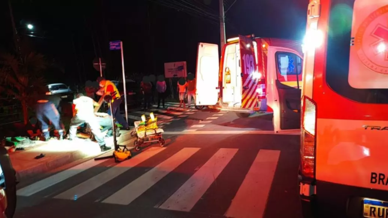 Colisão frontal entre carro e moto deixa motociclista ferido em Gaspar; motocicleta tinha placas de Blumenau