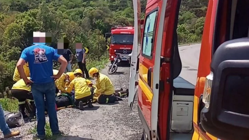 Motociclista perde o controle e cai em ribanceira na BR-470