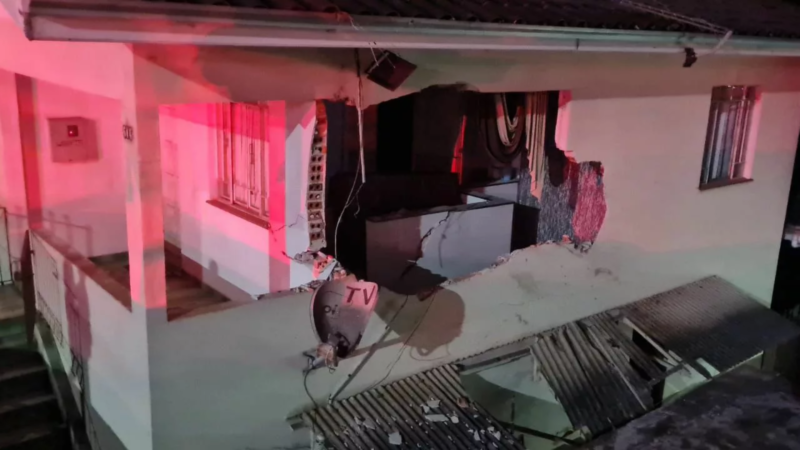 Carro colide contra residência e adolescente é ferido por escombros em SC