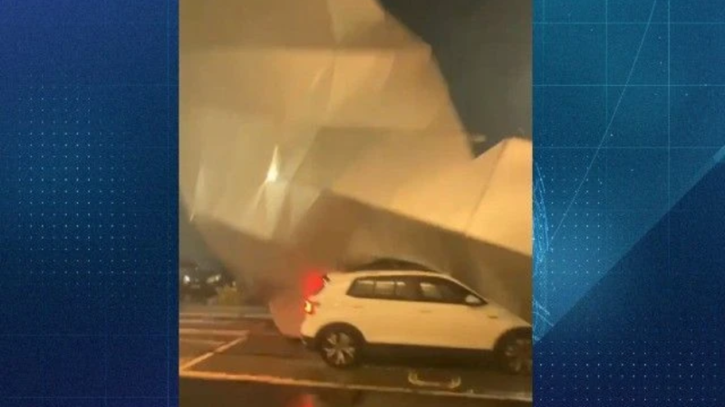Vídeo mostra fachada do shopping SP Market cedendo e atingindo carro