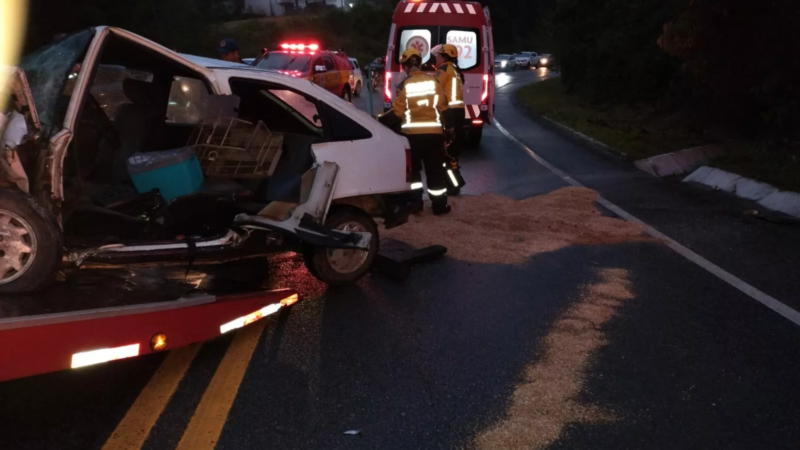 Acidente na BR-470 entre três carros resulta na morte de idosa