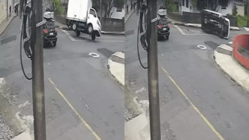 Caminhão tomba após colisão com carro em Joinville