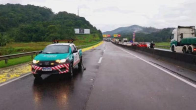 Laranjas caem de caminhão e BR-101 é interditada em Balneário Camboriú