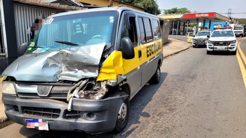 Van escolar bate em caminhonete e deixa cinco crianças feridas