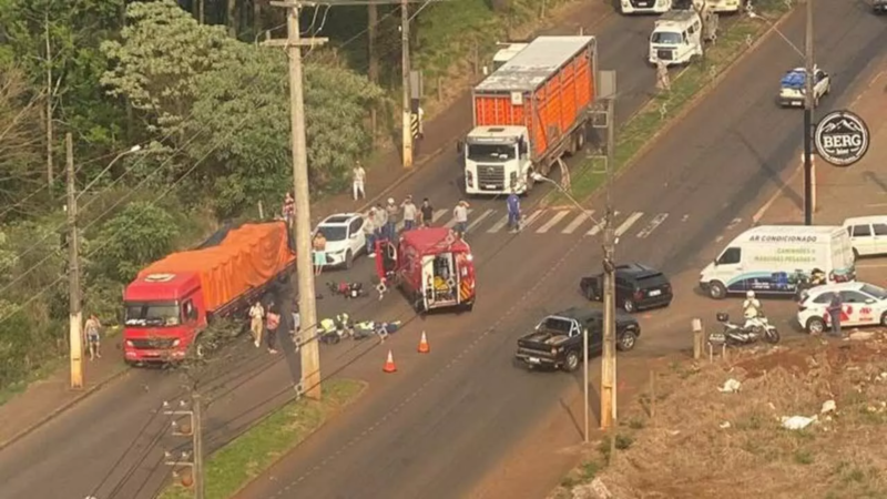 Motociclista colide com caminhão no Oeste de SC; veja vídeo