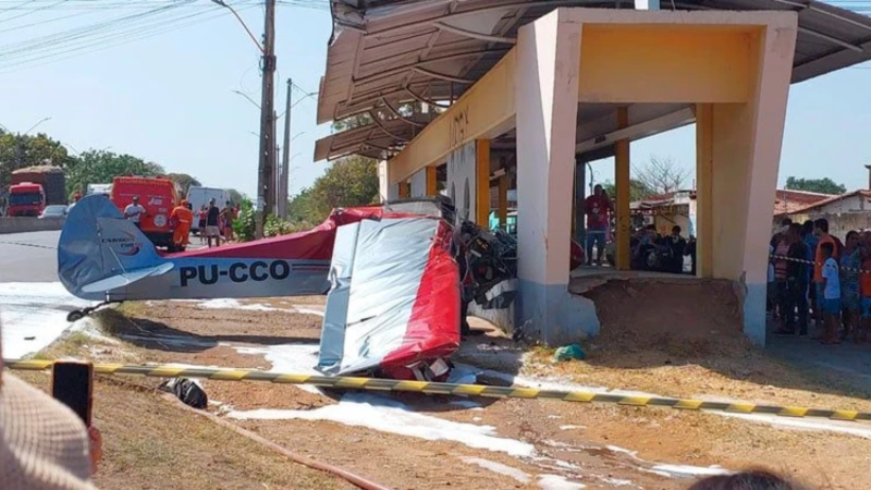 Avião de pequeno porte faz pouso forçado e atinge moto