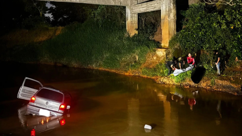 Motorista de 51 anos morreu após o carro cair de uma ponte e ficar parcialmente submerso em um rio, em Forquilhinha