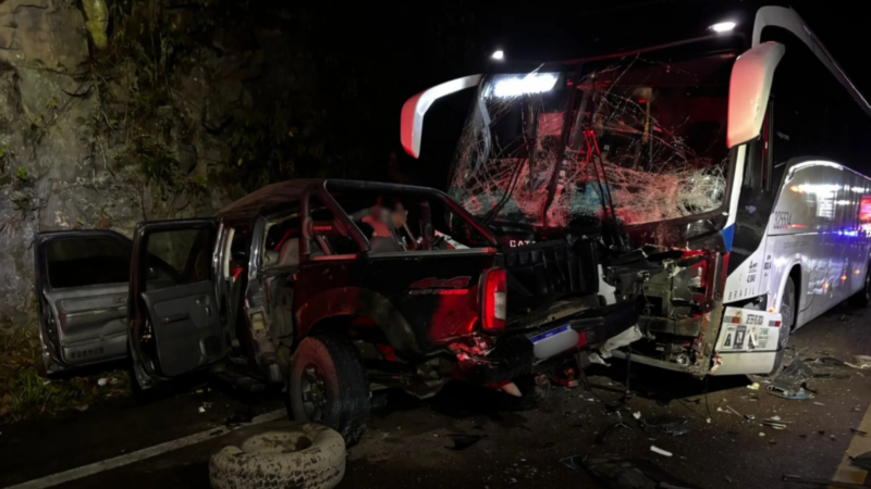 Acidente entre caminhonete e ônibus deixa dois mortos e 10 feridos na BR-470 em SC